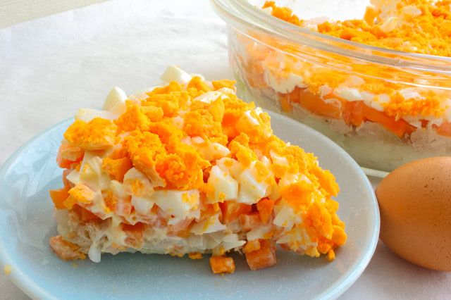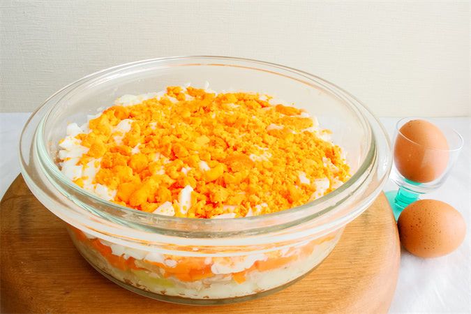 YouTubeの料理系チャンネル『東欧レシピ* Kitchen BELOCHKA』で作っていた、「ミモザサラダ」が完成しました。