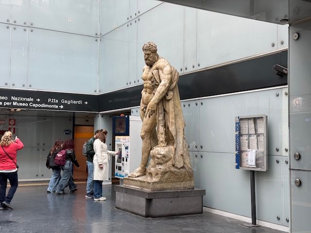 国立考古学博物館に隣接するムゼオ駅は、その名の通り「博物館的」な展示を楽しめる空間です。駅の構内には古代ローマの遺物が展示されており、ナポリの古代史と現代都市の融合が感じられるユニークな駅となっています。