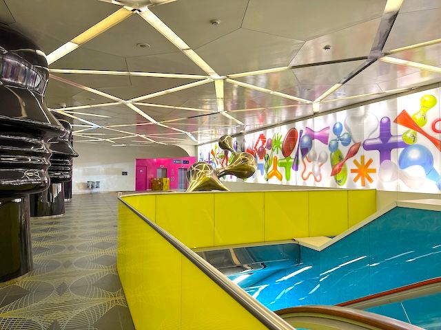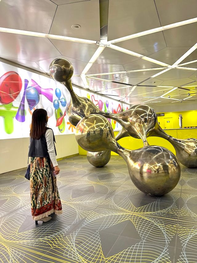 ベネズエラのアーティスト、Carlos Cruz-Diez(カルロス・クルス・ディエス)の作品が通路や壁を彩り、アートとテクノロジーの融合を体感できる空間です。