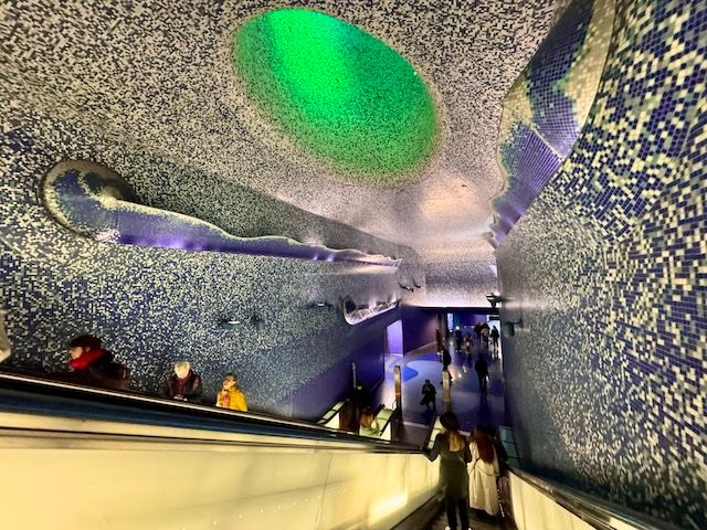 ナポリのアート駅の中でも圧倒的な人気を誇るのが、トレド駅。2012年、英紙『デイリー・テレグラフ』により「世界で最も美しい駅」と称されたこの駅は、青を基調とした幻想的な空間が広がります。