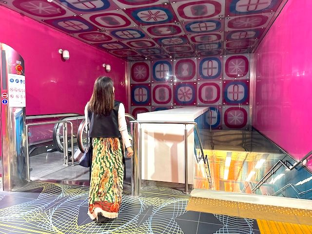 エスカレーターの方向によってピンクと青で色味が違うので、両方ぜひ写真を撮ってみては?