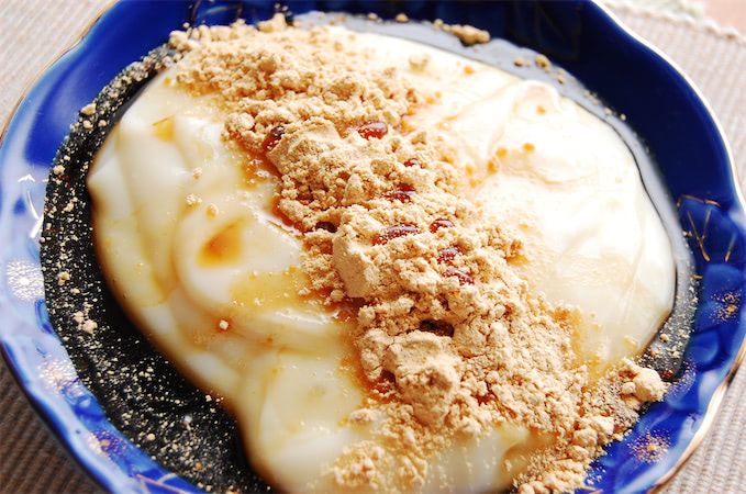 黒蜜をたっぷりかけてしまったので、けっこう甘め。豆乳餅自体がまろやかで甘いので、黒蜜は控えめでよさそうです。