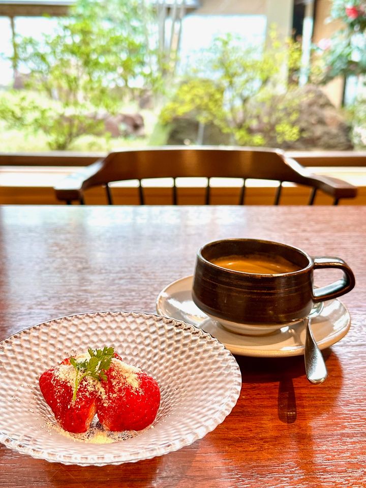 食後は中庭や通りを眺めながらコーヒーを♪
