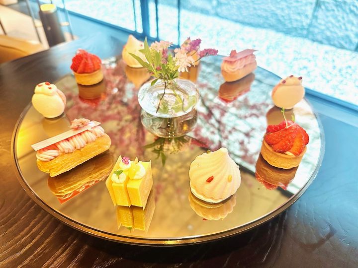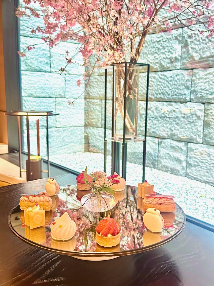 1階 「ザ リビングルーム」では、季節のアフタヌーンティーが女性に大人気。こだわりのジャパニーズティーとのティーペアリングとともに楽しめるコース仕立てのアフタヌーンティーで、4月までは桜色に彩られた「春のアフタヌーンティー」が開催中。館内に飾られた美しい桜を眺めながらお花見気分を味わえます。