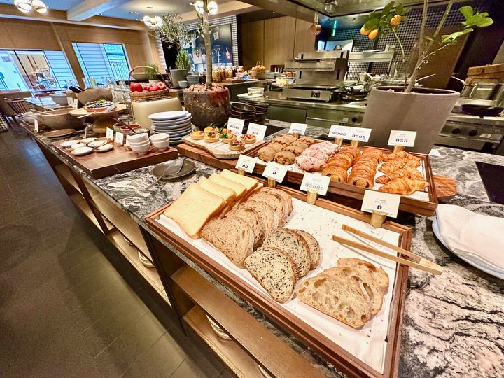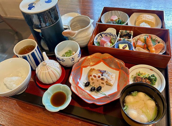 ここならではの朝食といえば、ミシュラン星付きの懐石料亭「山荘 京大和」が手掛ける和朝食を、カジュアルダイニング「KYOTO BISTRO(キョウト ビストロ)」でいただけること。一人用の釜で目の前でふっくらと炊き上げる丹後米コシヒカリと、京都の四季折々の食材を生かし丁寧に作られた料理の数々が勢ぞろい。歴史ある老舗料亭の味を気軽にいただくことができます。