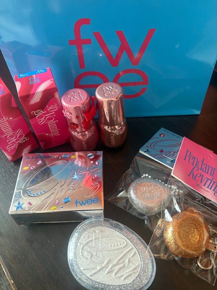 リップグロスとハイライターを購入🙌🏻✨キーチェーンは特典でもらえてお得でした🩵嬉しい💕