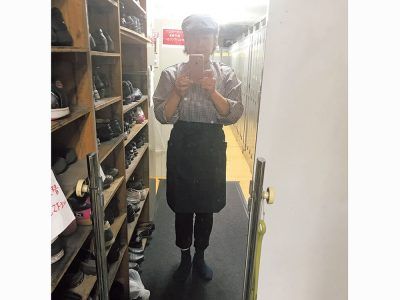 51歳で新店の店長に。初めて制服を着たときの自撮り写真です。この数カ月後に役員になりたいと直訴し、その後社長に抜擢されました。