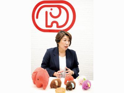 社員発案の「ドムゾウ」グッズは大ヒット。「企画は『いいんじゃない?』と肯定。結果が振るわなくても失敗とは思いません」。
