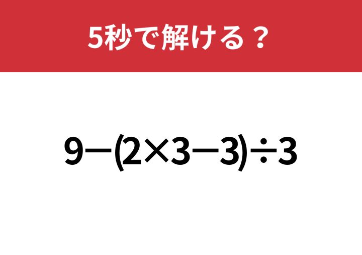 大人でも解けない人が多いかも!?「9−(2×3−3)÷3」5秒で解ける?