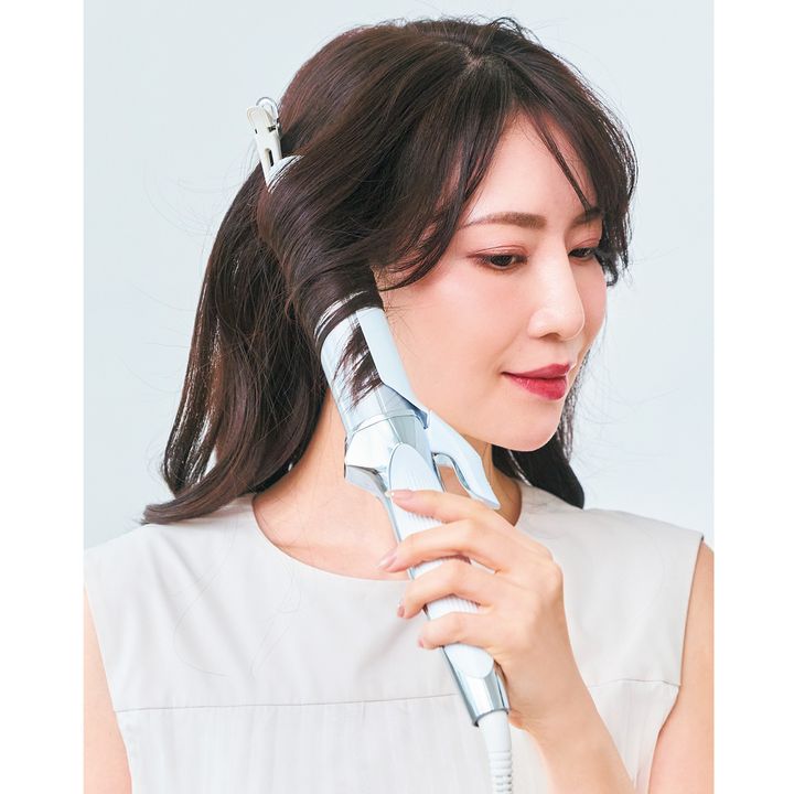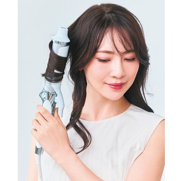 1.〈ロングヘアは38mmの太めが基本〉ロングを効率よく巻ける太め。リファカールアイロン プロ38〈ホワイト〉¥25,000(MTG)