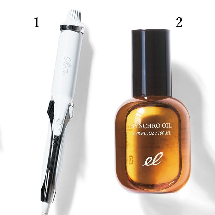2.〈オイルで毛流れを際立たせて〉活性電子水™と美容オイルの2層のヘアオイルが、なめらかなツヤ髪に導く。エレクトロン シンクロオイル100ml¥3,960(GMコーポレーション)