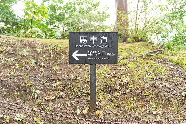「旧岩崎邸庭園」の正面玄関へと続く道には、「馬車道」と書かれた立て看板があります。これは、明治時代の当時に馬車で行き来していた道であることから。現在は歩いてここを上り、洋館の正面玄関へと行きます。ゆるやかな坂になっていますが、道沿いに咲く季節の花々を眺めつつ、楽しみながら上りましょう。馬車でこの道を通っていたなんて、当時の華やかな生活が想像されますよね。