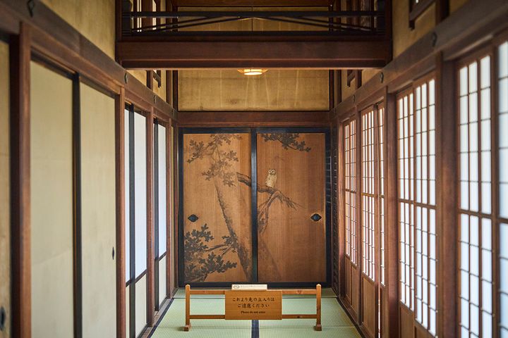 奥のふすまには、明治を代表する日本画家・橋本雅邦(はしもとがほう)が描いたと伝えられる障壁画などが残っています。