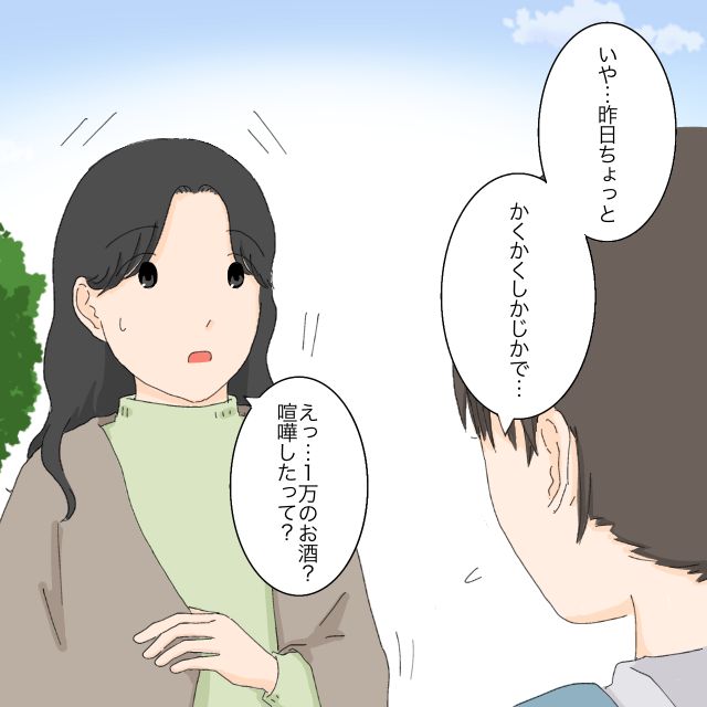 私はみや子さんに、昨晩の出来事を話しました。みや子さんは驚いて「えっ1万円のお酒?ケンカしたって?」私は大泣きしたまま部屋を出てしまったことも正直に話しました。