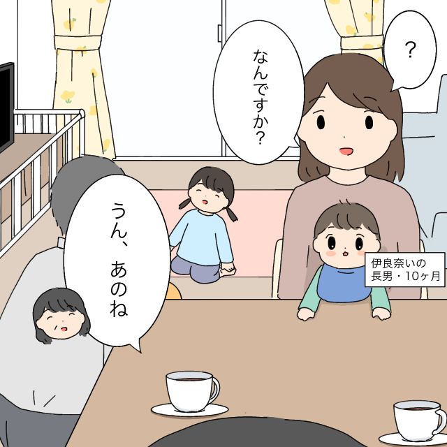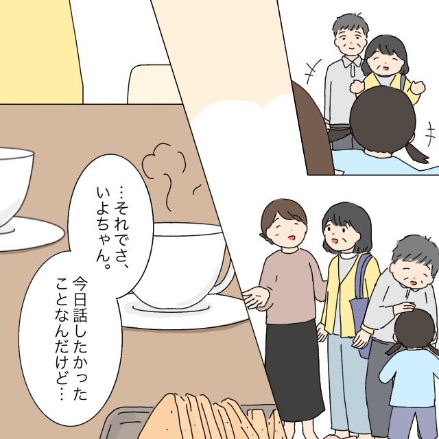 私たちはさっそくお茶の時間にしました。「・・・それでさ、いよちゃん。今日話したかったことなんだけど・・・」とお義母さんが話し始めました。