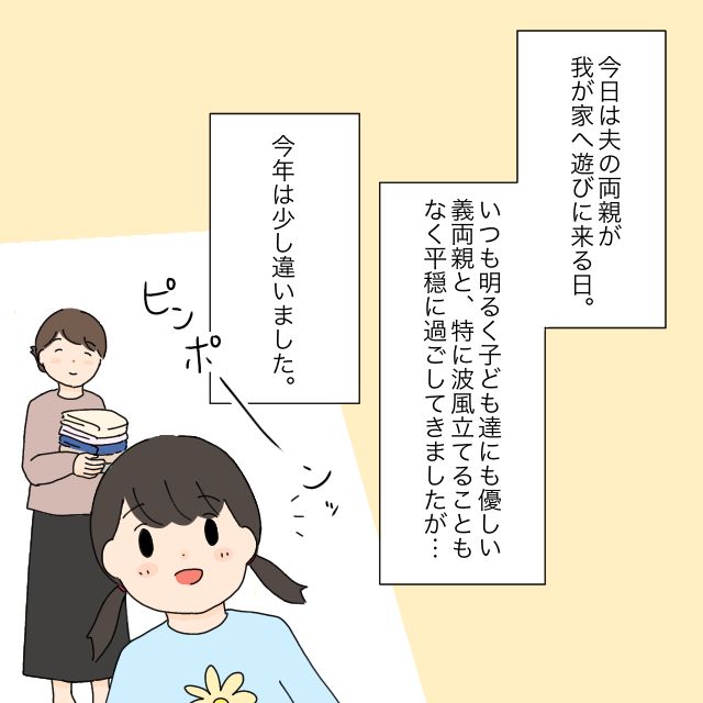 チャイムが鳴り、義両親がやってきました。