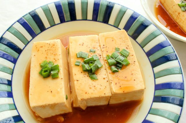食べてみると、オイスターソースの旨味とまろやかさが、ほんのり豆腐を包んでいます。中までは味が染みていないので、全体的にはあっさり。湯豆腐気分でいただけますが、黒こしょうがふわっと香って、ほんの少しアクセントが付いています。