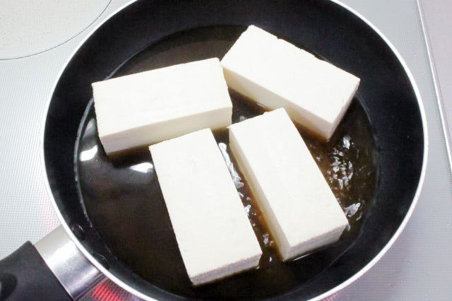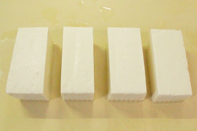 今回は、長方形の豆腐を縦に4等分に切りました。