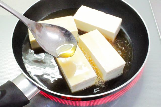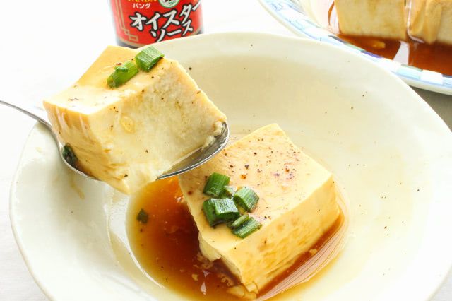 オイスターソースは、そのまま使うと濃厚。けれど、水と酒で薄めて使うので、程よい塩味とカキのコクを、豆腐に染み込ませることが出来ますよ。