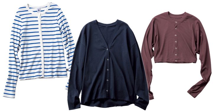 スナップカーディガンを一枚で着る、それだけでコーデが新鮮に!簡単にフレンチカジュアルを楽しめる品のいい甘さもこの春の気分です。ロンT感覚で着れるカーディガンをご紹介します。