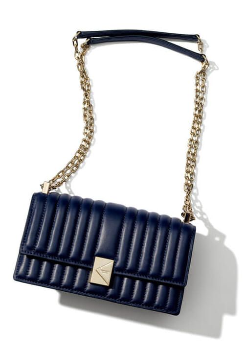 黒ではなく深いネイビーなのが新鮮。ゴールドの留め具にも洗練感が。
