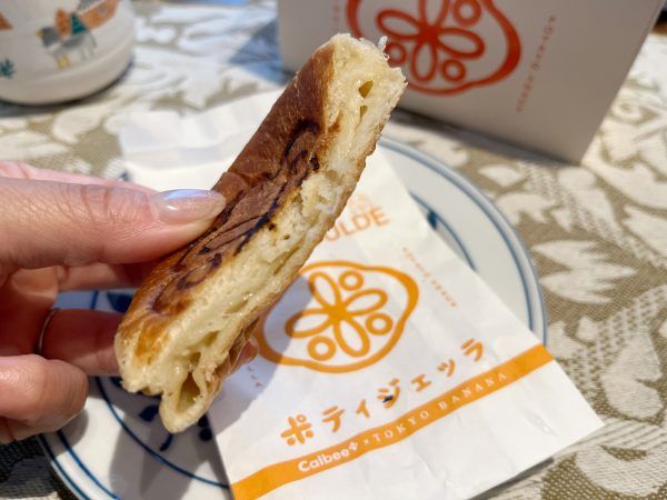こちらも新商品、ほかほかがおいしい「ポティジェッラ」。イタリアのおやき「ティジェッラ」から発想を得た商品なのだとか。もっちりした食感の生地の中からは、北海道産生乳100%のたっぷりモッツァレラチーズがとろ~りあふれ出します。店内厨房で仕上げ焼きをして販売するため、11時~と17時~の2回の販売のみ。
