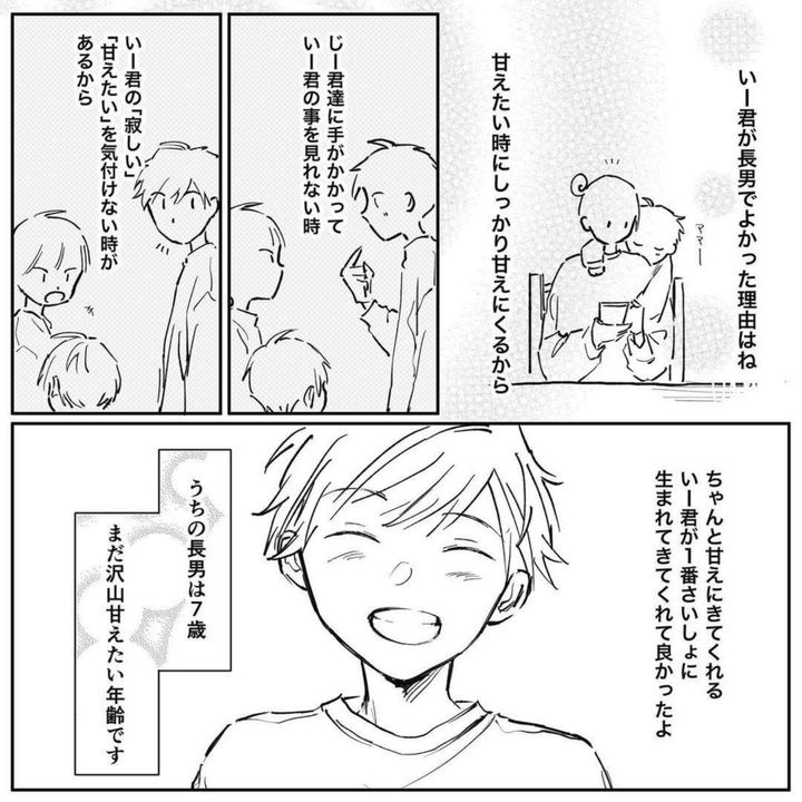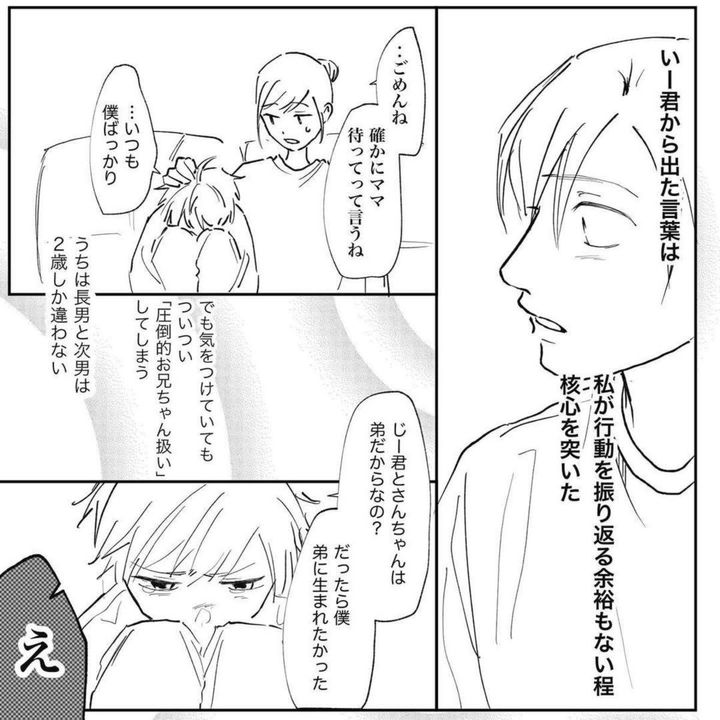 そして、「弟に生まれたかった」と言う いーくんに対して、「それは困る」ととっさに返した ちかさん。そして、ちかさんは いーくんに率直な気持ちを伝えます。