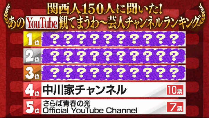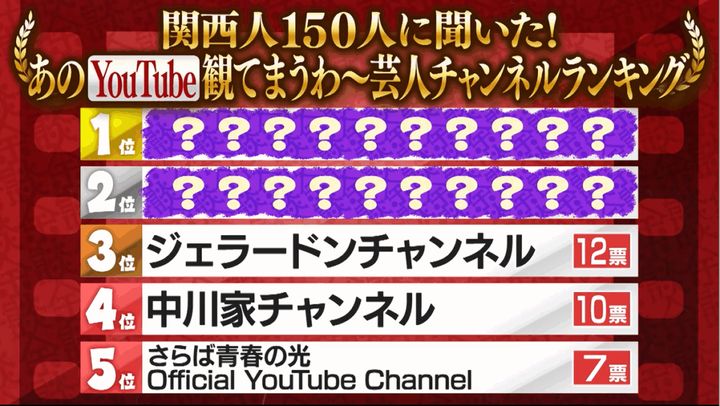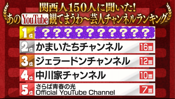 なお、「あのYouTube観てまうわ〜」芸人チャンネルランキングは、4月23日に放送されたバラエティ番組『これ余談なんですけど・・・』で発表された。