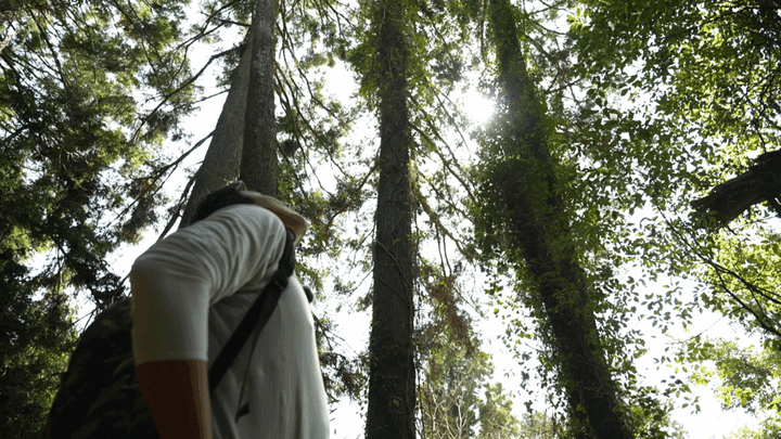 俄然、スイッチが入った原田さん、少年のように目をキラキラさせながら急な斜面をどんどん登っていき、やがて頂上へ。