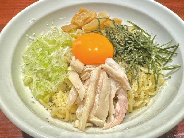 ◆「油そばSophia(ソフィア)」(1100円) 英語の名前がついたこちらの油そばは、「薫」をベースに、トリュフオイルとパルメザンチーズを贅沢に使用。出汁醤油とチーズのコクが合わさった洋風仕立ての油そばです。