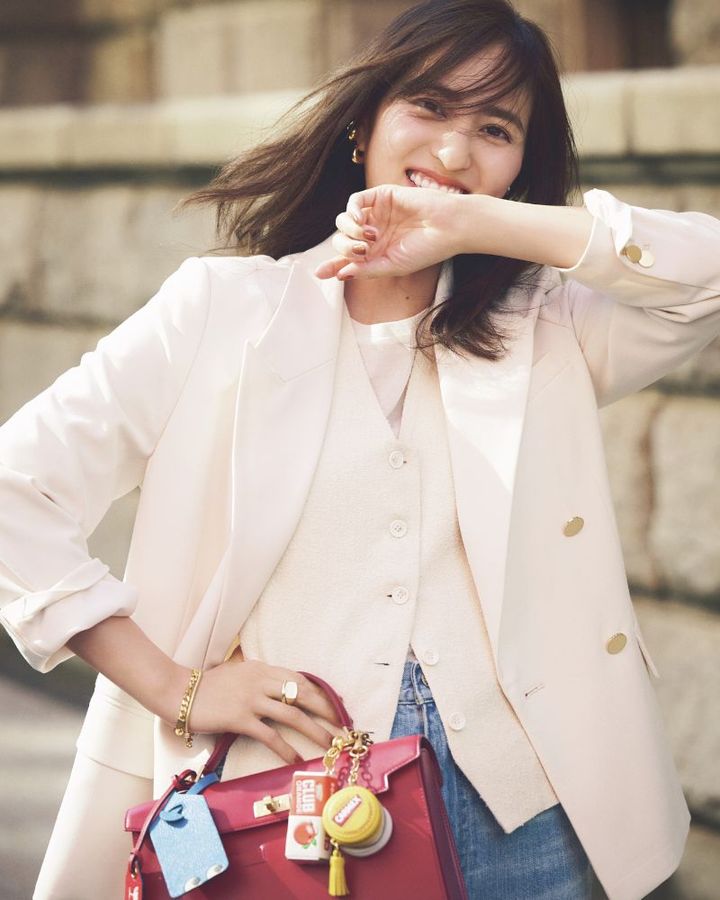 通勤ワードローブに欠かせないジャケットは、真面目になりすぎないバランス調整が肝。クリーンな白をチョイスしたり、カジュアルなデニムパンツやチャーム付きカラーバッグでハズしを効かせると愛嬌たっぷりに仕上がります。トップスは同系色の白ベストやシアーカットソーで奥行きを加えて洗練度をアップ。仕上げにゴールドジュエリーで気品と大人の余裕を演出するとうまくいきます。
