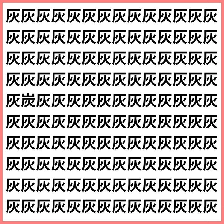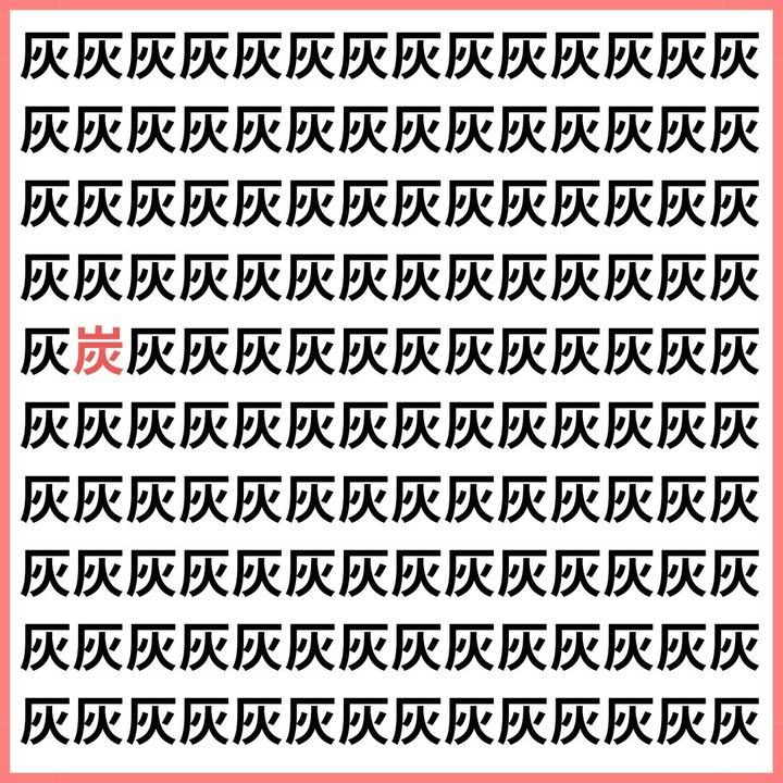 たくさんの「灰」の中に、1文字だけ違う漢字が混ざっています。