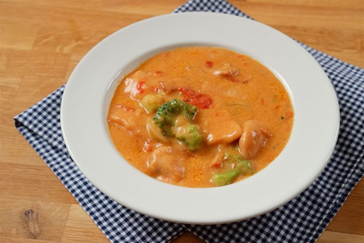 トマトの酸味とカレー粉のスパイシーさ、牛乳のまろやかさが絶妙にバランスを取っています。