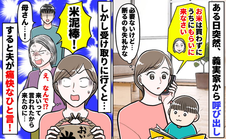 義母からお米をあげると言われ義実家へ行くと「米泥棒!!」なんで…?夫が反論するとまさかの展開に