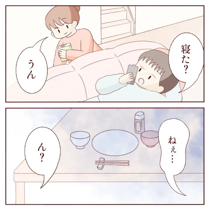 子どもたちを寝かしつけ、1時間後にリビングに戻ると、ソファに寝転んでいた夫がスマホに目を向けたまま「寝た?」と聞いてきました。「うん」と答えながらふとテーブルを見ると、夫が夕食を食べ終えた食器がそのまま置かれていました。またか・・と思いつつ、「ねぇ・・」と声をかけた私。