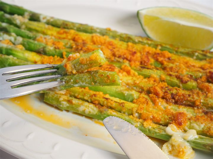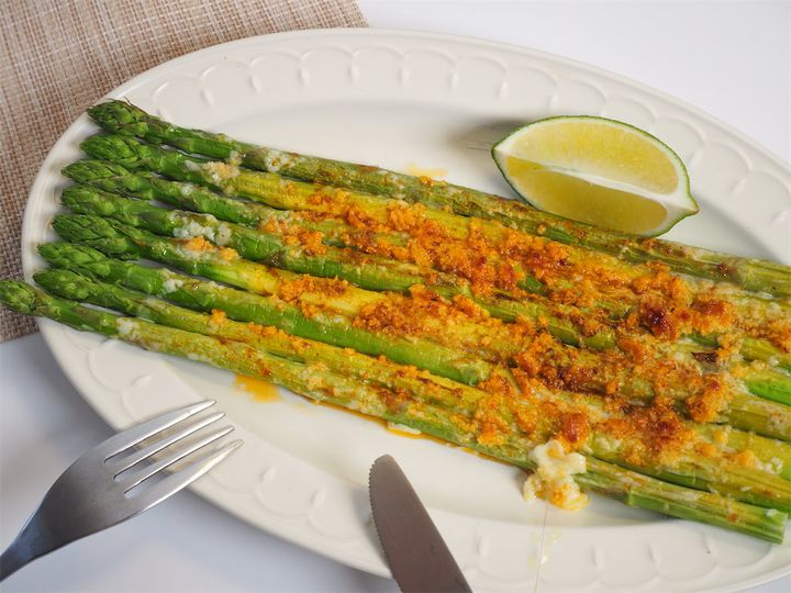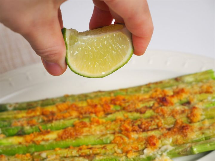 粉チーズはとろり溶けた部分と表面がサクサクの部分も。切って食べるのもいいけれど、指でつまんで長いアスパラガスをほくほくと食べる感じもスナックみたいでいいですね♪ライムを絞ってかけると爽やかな香りが広がります。チリパウダーとライムを掛け合わせるとメキシコ風味が増し増し!簡単だから、仕事帰り疲れていても気軽に作れて、晩酌にもぴったりです。ホームパーティーでさくっと作れば、喜ばれること間違い無し♪