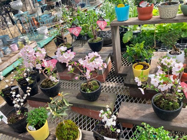筆者が伺ったのは、ちょうど桜が満開のころ お店の中にも桜の盆栽が販売されており、目を楽しませてくれました。