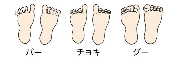 さらに息を吐きながら両足の指を大きく開き、パーを作ります。そして吸う息に合わせて戻しましょう。このグー・チョキ・パーを連続して行います。