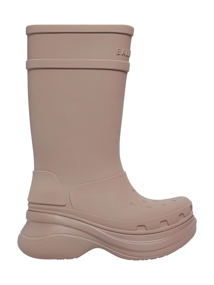 バレンシアガBALENCIAGA)のハイエンド感がミックスされ、クロックスCROCS)のアイコン的モデルである「クロッグ」が大人っぽくエレガントなレインブーツに昇華。バレンシアガのロゴがフロントに入る。EVA製で弾力性があり、窮屈さのないリラックスした履き心地をキープしてくれるのもうれしい。雨の日に限定せず、デイリーに履き回したい。