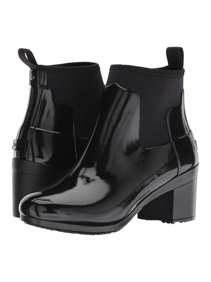 王室御用達として知られるハンターHUNTER)のレインブーツ。オリジナルブーツは色違いで何足も欲しくなるけれど、差をつけるなら光沢感があり、ヒールも付いたデザインをセレクトして。スマートなノーズに加え、足首からかかとにかけてのラインはカーヴィーで、美脚が叶う1足だ。シャフトの高さは12.5㎝あり、パンツにもスカートにも合う。通勤やパーティにパンプス感覚で履いてもいい。