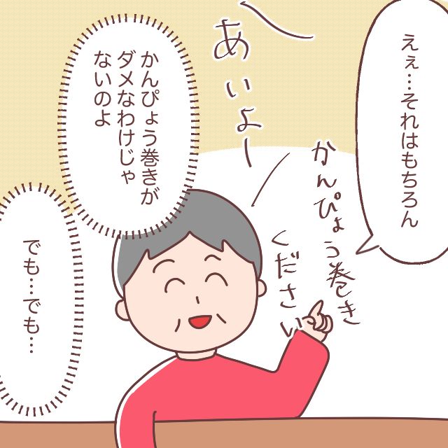 かんぴょう巻きがダメな訳じゃないんです。もちろんカスミさんが食べたいものを頼んでほしい。でも、でも!