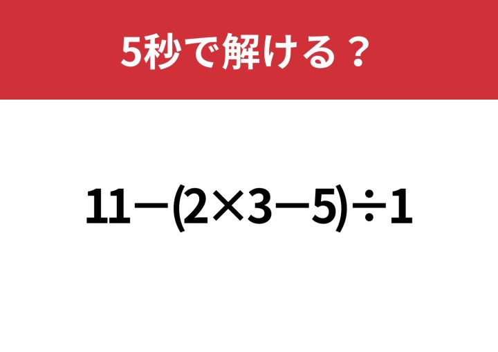 大人でも解けない人が多いかも?「11−(2×3−5)÷1」5秒で解ける?