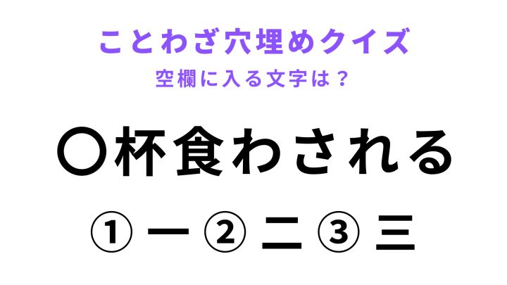 「〇杯食わされる」の空欄に文字を入れると、あることわざが完成します。