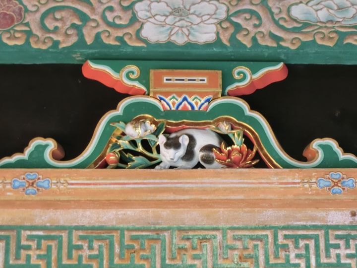"猫が起きていれば雀は食べられてしまいますが、猫が眠っていれば雀と共存できる"という平和への願いが込められているようで、 戦乱がなかった徳川幕府(江戸幕府)の世をあらわしているような彫刻で面白いですよね。