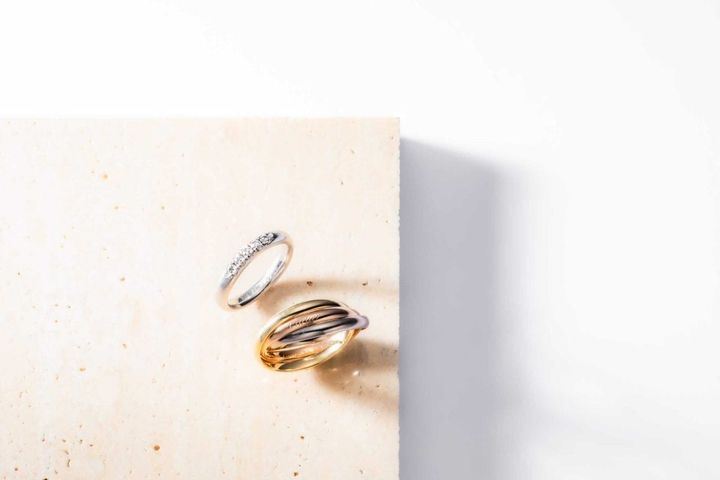 (上・1stマリッジ)ミキモト マリッジリング (下・2ndマリッジ)カルティエ トリニティ リング