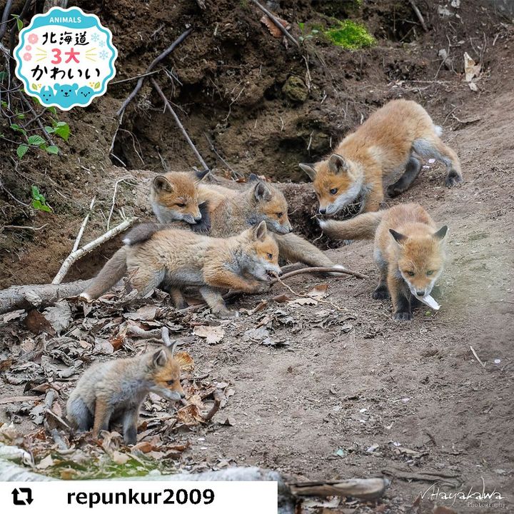 子ギツネが6匹も!なかなかの大家族ですねー。