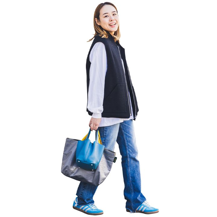 昨夏開催された「歯磨き」回に初参加。楽しく学べて役立ちました!このロンTはメンズで夫と兼用中。しっかりとした袖口だから腕まくりもサマになります。ジレを羽織って辛口に、ブルーの差し色投入でよそ行き感をアップ!