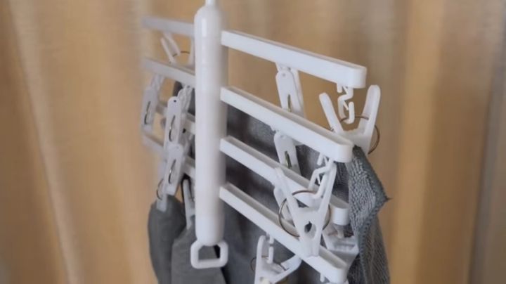 バーが360度回転し、干すものに合わせて自由に形を変えられるピンチハンガー。