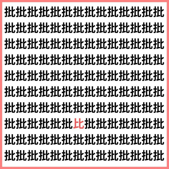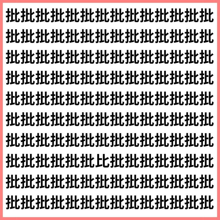 たくさんの「批」の中に、1文字だけ違う漢字が混ざっています。