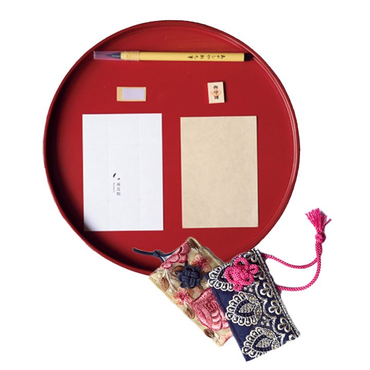 自分でお願い事を書いて、祈祷済みの木札、塗香とともに100通り以上あるお守り袋に入れておまいりできる、お守り作り体験が人気。袋はすべて手作りで、自分らしいものがきっと見つかります。御志納料¥3,000